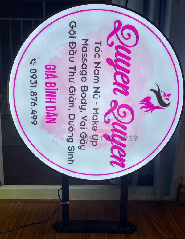 Hãy là người đầu tiên nhận xét “Hộp đèn mica hút nổi tròn 90 in nội dung 2 mặt sắc nét”
